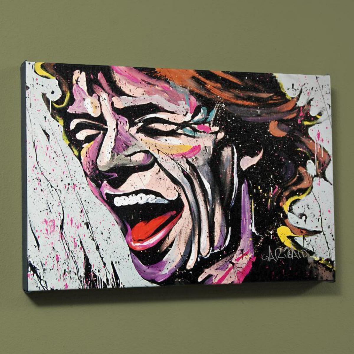Combining his passions for music and art, David Garibaldi creates stunning visual poetry. "Mick Jagger" is a limited edition giclee on stretched canvas, numbered and bearing the artist's authorized signature. This piece comes gallery wrapped. Includes Letter of Authenticity. Measures approx. 40" x 30" (image). Reference #: 237373.