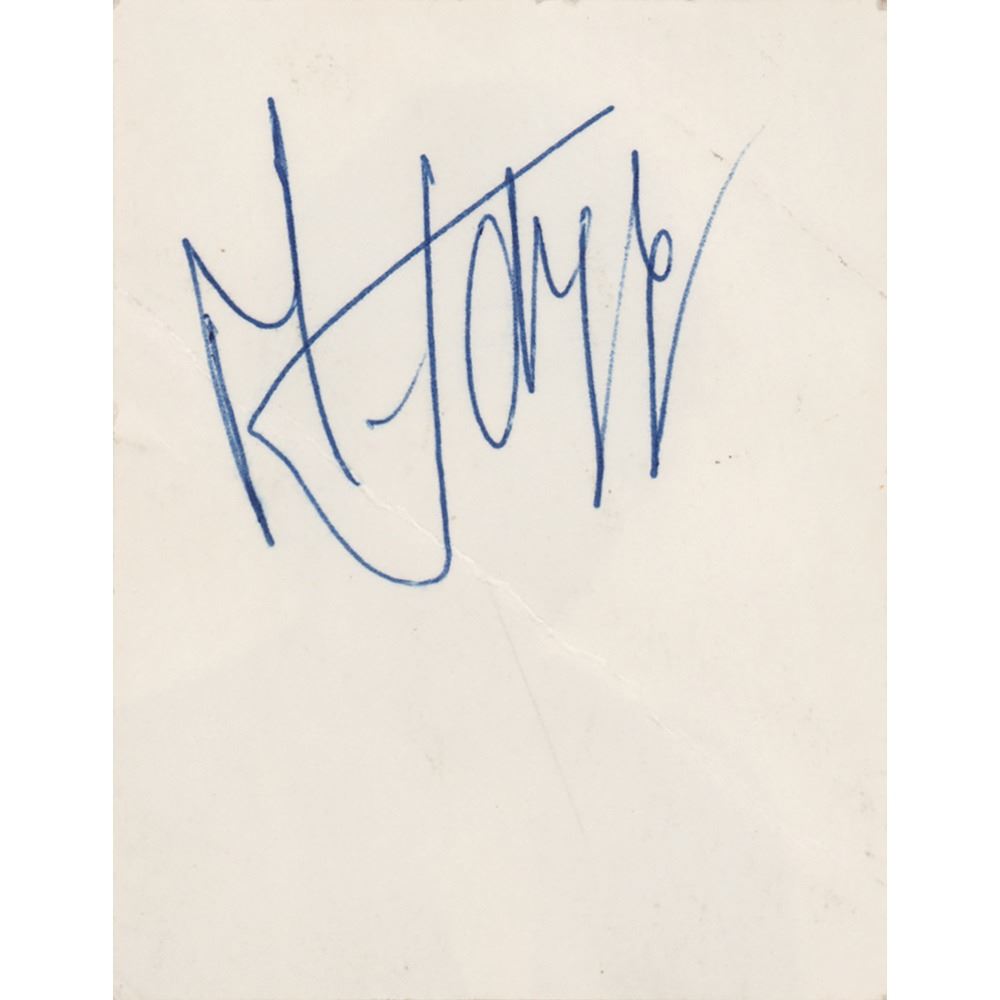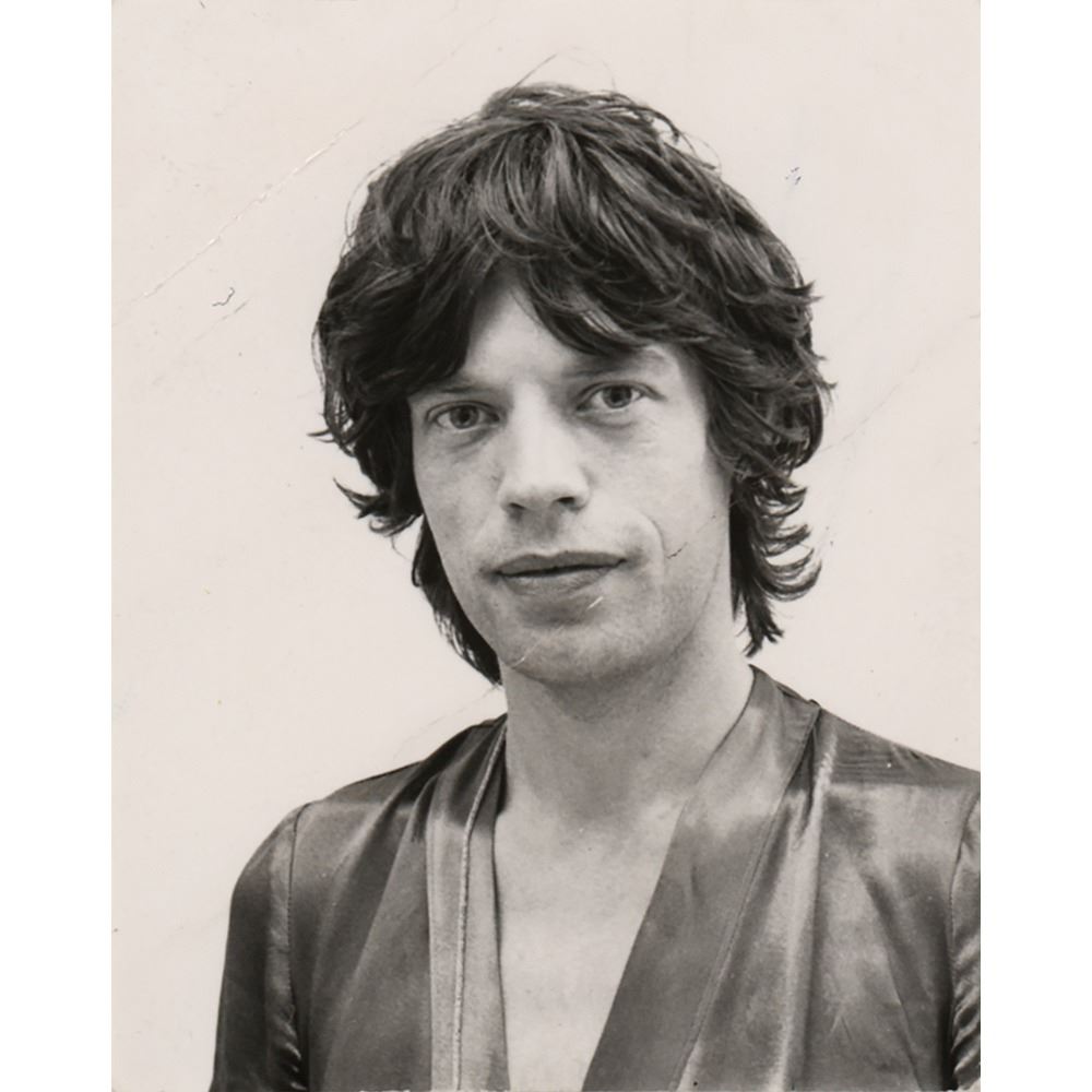 Original glossy 2 x 2.5 passport-sized photo of the Rolling Stones frontman, signed on the reverse in blue ballpoint by Mick Jagger. The consignor notes that the photograph and signature date to the 1970s. In very good to fine condition, with creases which pass through Jagger's face. Accompanied by a certificate of authenticity from Tracks.