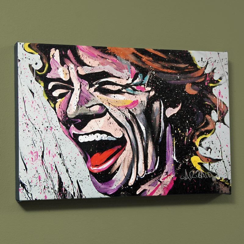 Combining his passions for music and art, David Garibaldi creates stunning visual poetry. "Mick Jagger" is a limited edition giclee on stretched canvas, numbered and bearing the artist's authorized signature. This piece comes gallery wrapped. Includes Certificate of Authenticity! Measures approx. 40" x 30" (image).