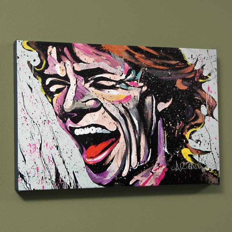 Combining his passions for music and art, David Garibaldi creates stunning visual poetry. "Mick Jagger" is a limited edition giclee on stretched canvas, numbered and bearing the artist's authorized signature. This piece comes gallery wrapped. Includes Letter of Authenticity. Measures approx. 40" x 30" (image).
