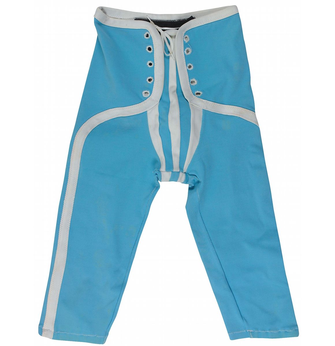 Jagger’s stage-worn blue and white pants from the 1982 Rolling Stones European Tour. Pants are three-quarter length with a lace-up front and were designed by Antony Price, whose tag is sewn into the waistband with no size indicated. In fine condition, with light scattered soiling. Accompanied by multiple images of Jagger wearing these pants in concert. Previous owner obtained them while backstage at one of the concerts. This European tour was to promote the album Tattoo You, an extremely critically and commercially successful release featuring one of their best known songs, ‘Start Me Up.’ Provenance: Julien’s 2011.