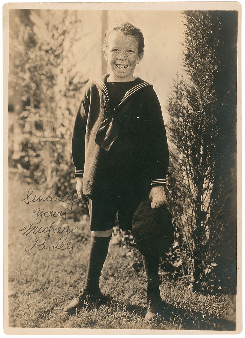 Child actor (1914-1970) known for his appearances in Our Gang, also known as The Little Rascals. Adorable vintage matte-finish 5 x 7 photo of the freckled Daniels, signed in black fountain pen. Notation on reverse indicates it was signed in 1926, when Daniels was 11 years old. In fine condition, with silvering to dark areas of background and scattered mild impressions and creases.