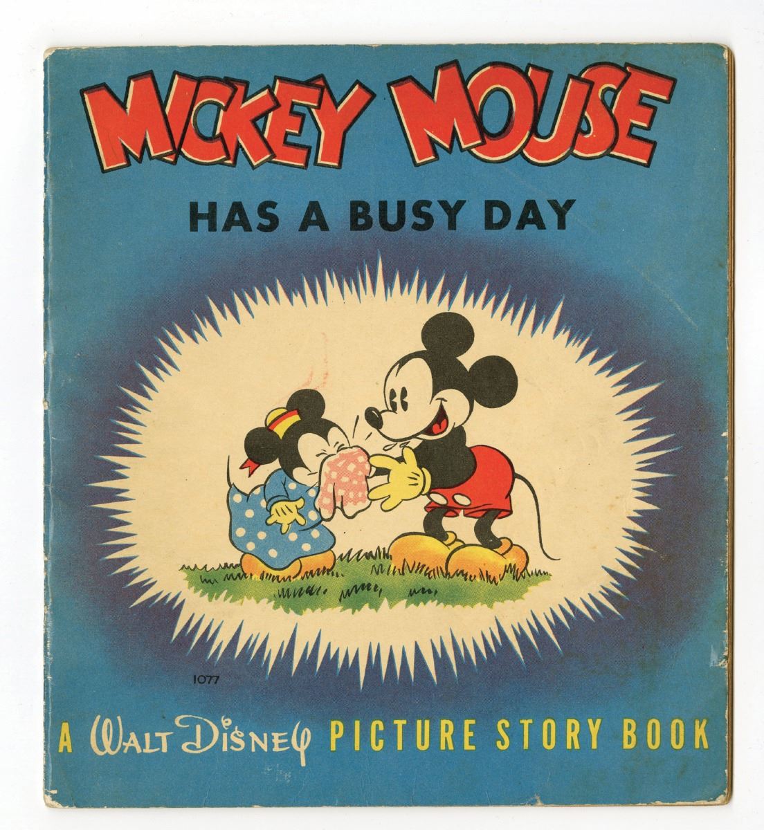 (Whitman Publishing Company, 1937) Mickey Has a Busy Day #1077 picture story book. Measures 9.5"x8.5". 16 pages. In good condition.
