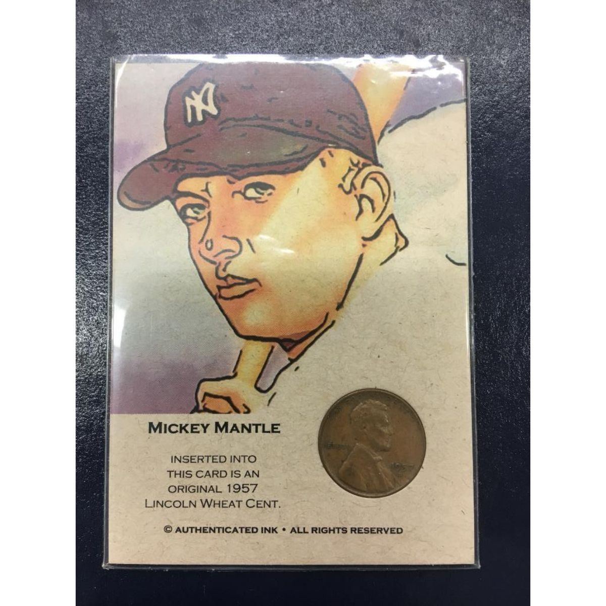 A Mickey Mantle Authenticated Ink with Original 1950 Lincoln Wheat Cent. A Great Collector Card For Your Collection. View Photos For Further Details.
