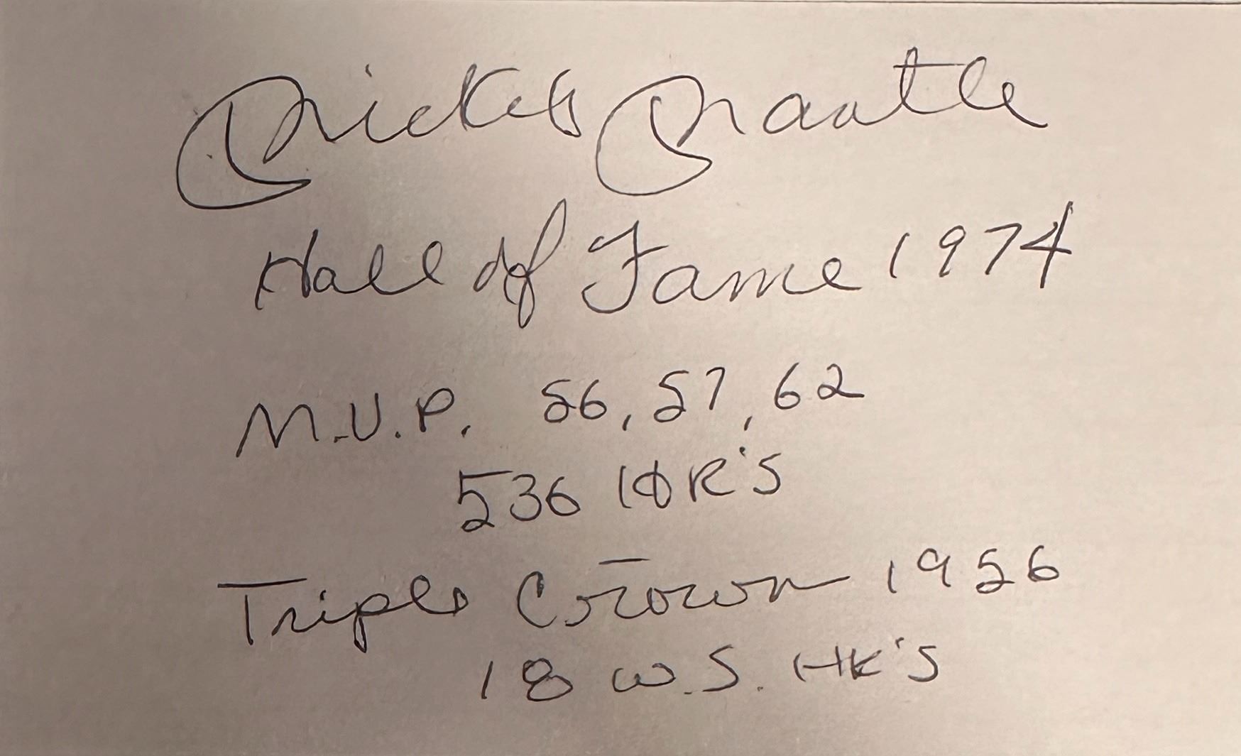 Mickey Mantle Autographed Card w/Stats