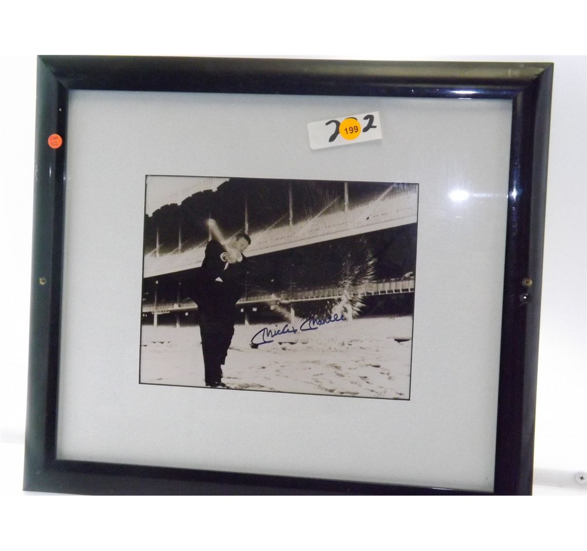 Mickey Mantle Autographed Photo. 18x16 Framed Photo. Appraised or estimated retail value $2000. COA by Christopher Morales. All Sales Final. Please see terms and conditions of auction.