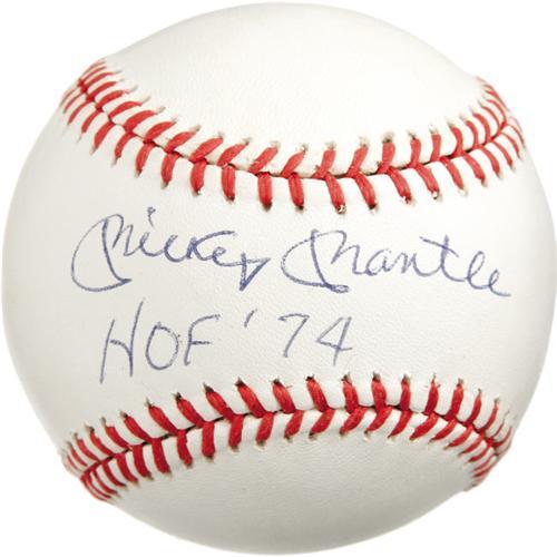 <B>1980's Mickey Mantle "H.O.F. 1974" Single Signed Baseball.</B></I> Combining exceptional condition with a highly desirable signature notation, this OAL (Brown) baseball is pure gold to the Mick's legions of fans and collectors. We'd strongly suspect a rating of at least Mint 9 would be in order should the winning bidder choose to submit it for professional grading. It's a blazing beauty. <I>LOA from PSA/DNA. LOA from James Spence Authentication.</B></I><BR><BR><b>Shipping:</b> Balls, Pucks, etc., Small (<a target="_blank" href="http://www.heritageauctions.com/common/shipping.php">view shipping information</a>)