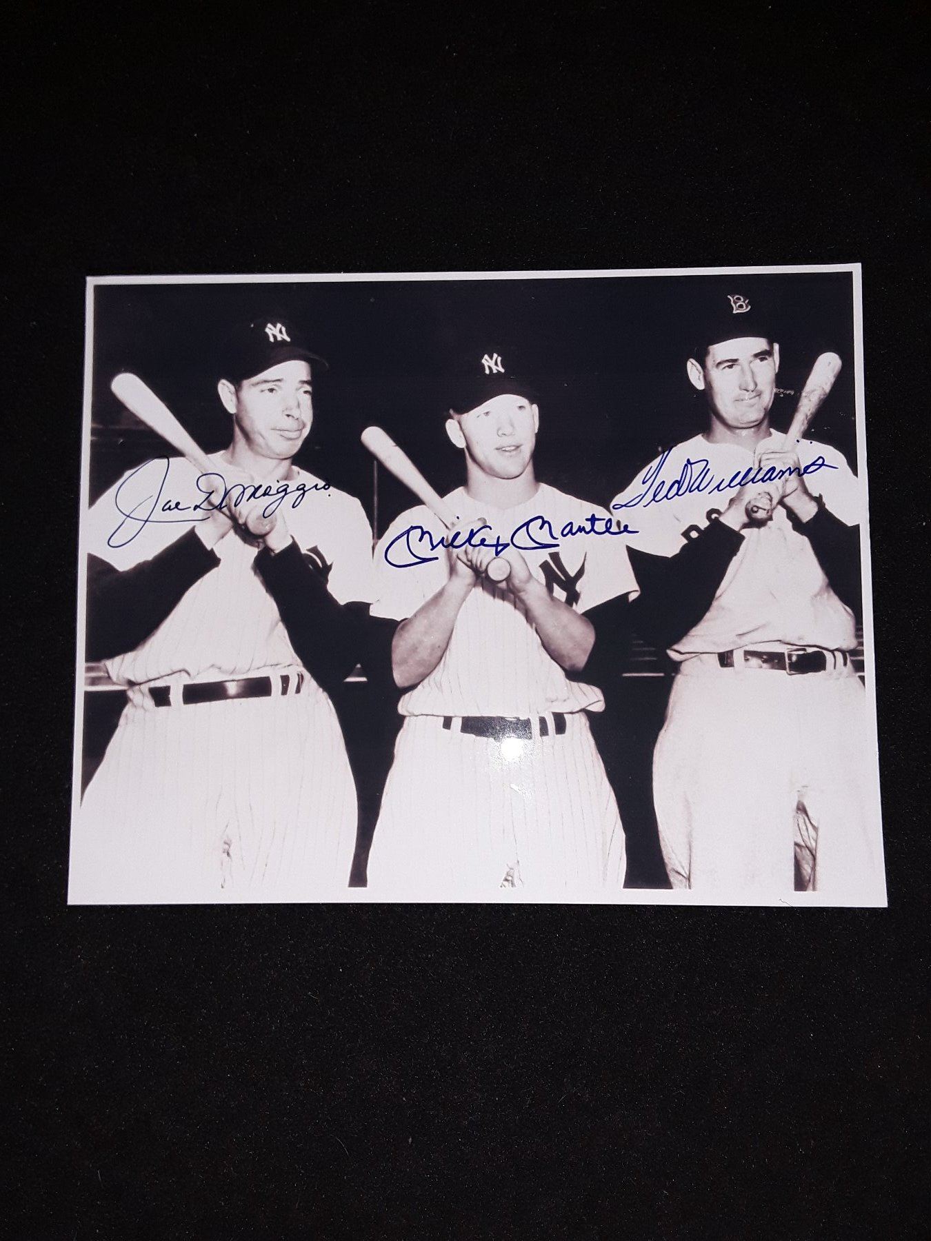 Mickey Mantle Joe Dimaggio Ted Williams Autograph 8x10 Photo W/COA