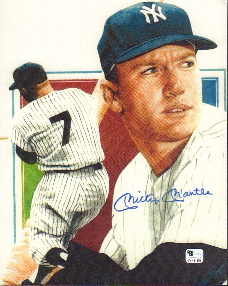 Color 8x10 photo signed by baseball legend Mickey Mantle. The signature has been certified by Global Authentics and issued number GV411383. All items come with a certificate of authenticity good for the life of the piece.
