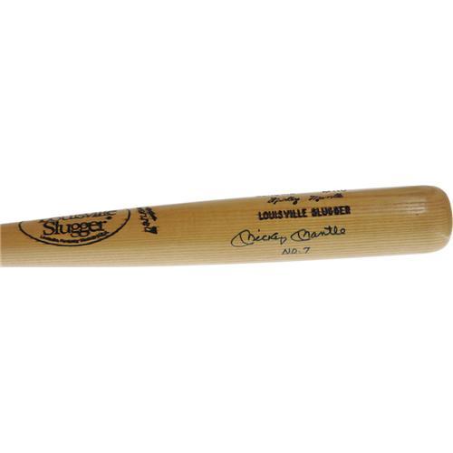 <B>Mickey Mantle Signed Bat.</B></I> While the Mick could work magic with a Louisville Slugger, he hated to sign them, and tried to discourage autograph hounds by demanding what was then considered an exorbitant sum to apply sharpie to wood. This example was actually acquired directly from the Mantle family, and rates as one of the finest examples you'll find. It's not only the background that makes this one a winner, but the 10/10 quality of the blue sharpie signature and the desirable "No. 7" notation below. The signature model Louisville Slugger M110 is the most appealing of media as well. <I>LOA from PSA/DNA. LOA from James Spence Authentication.</B></I><BR><BR><b>Shipping:</b> Bats, Clubs, Sticks, Swords, Rif (<a target="_blank" href="http://www.heritageauctions.com/common/shipping.php">view shipping information</a>)