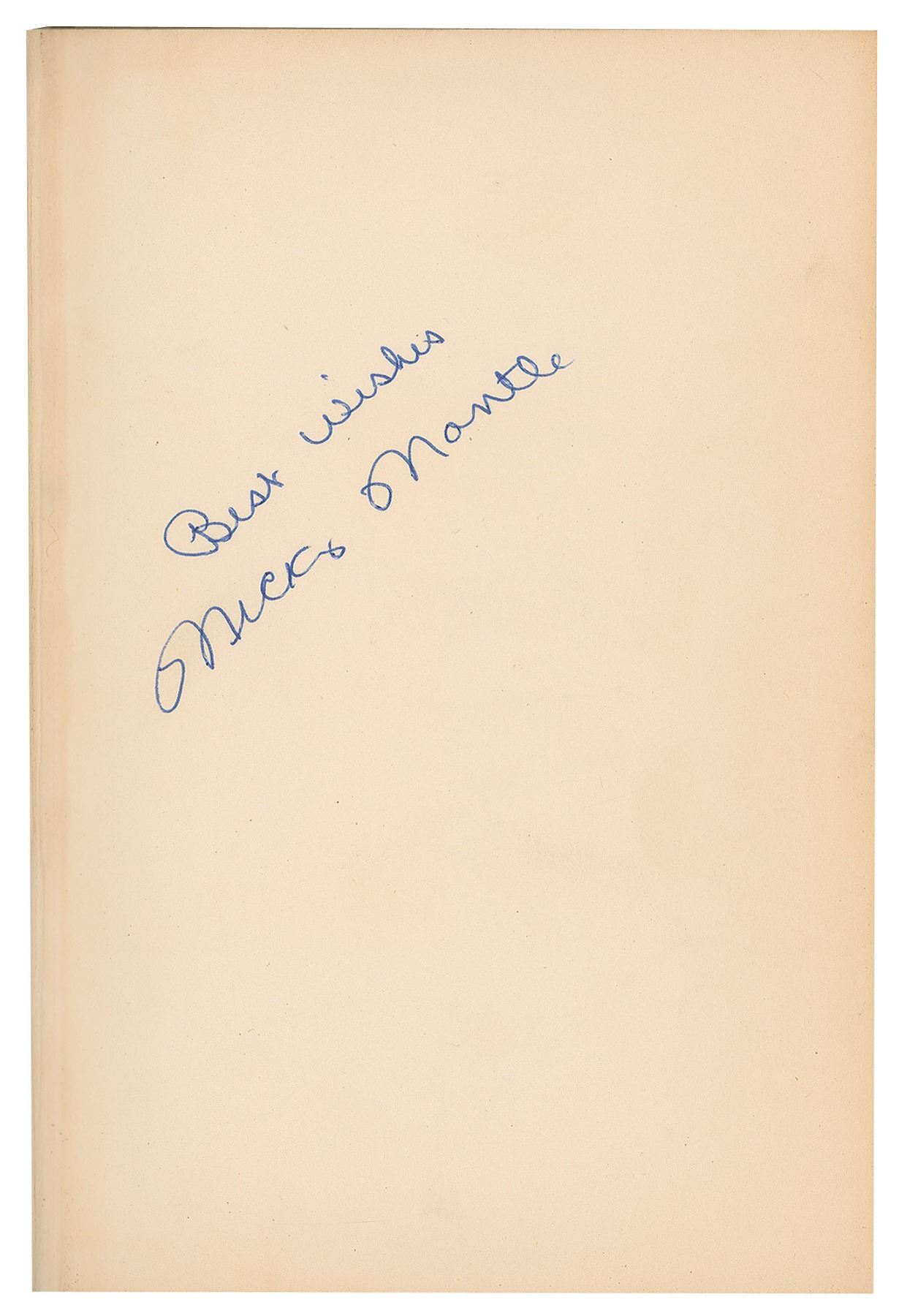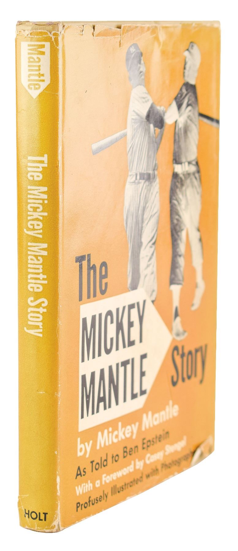 Signed book: The Mickey Mantle Story. Third printing. NY: Henry Holt and Company, 1956. Hardcover with dust jacket, 5.75 x 8.5, 108 pages. Signed on the first free end page in ballpoint, "Best wishes, Mickey Mantle." In fine condition, with wear and some tears to dust jacket.