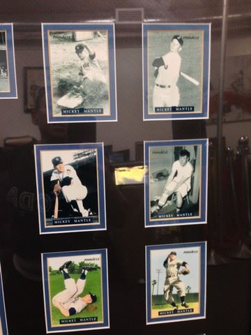 An amazing display of one of the most famous New York Yankees of all time, "Mickey Mantle". An autographed and framed large color photo with 30 different collector cards, framed in plexiglass. Mickey Mantle played his entire career as a New York Yankee, # 7. MVP 1956, 1957, 1962 and Triple Crown winner 1956. "The Mick" was his nickname and he was elected into the Baseball Hall of Fame in 1974. This is truly a one of a kind collector's item. Note: frame has scratches in some parts of the outer area. (34"x42")
