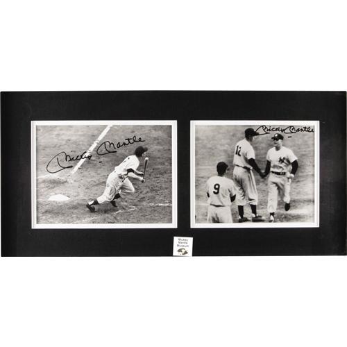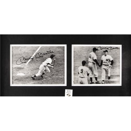 <B>Mickey Mantle Signed Rare Photographs Lot of 3.</B></I> Exceptional trio of signed photos all derive from the Mickey Mantle Museum, and are affixed with holographic stickers attesting to the fact. While admittedly signed Mantle photos couldn't be considered rare ordinarily, we'll bet you haven't seen the images presented here. First we have an image of the Mick, joined by Joe DiMaggio, and each signs in 10/10 quality. Finally, a display piece captures the beginning and end of a Mantle home run in two photographic images. Again, each is signed perfectly, and all are attractively matted and framed. All photos are 8x10" in size. <I>LOA from PSA/DNA. LOA from James Spence Authentication.</B></I><BR><BR><b>Shipping:</b> Framed (<a target="_blank" href="http://www.heritageauctions.com/common/shipping.php">view shipping information</a>)