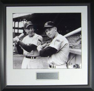 Joe Dimaggio played his entire 13-year baseball career for the New York Yankees. He was voted into the Baseball Hall of Fame in 1955. Mantle played his storied 18-year major-league professional career all for the New York Yankees, winning 3 American League MVP titles and playing in 16 All-Star games. This is a Joe DiMaggio and Mickey Mantle custom framed and matted unautographed 16x20 photo.