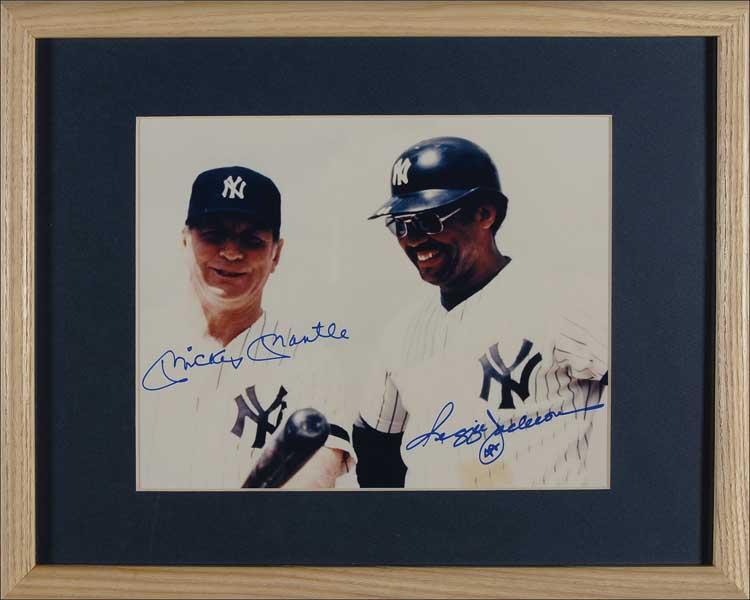 Color glossy 9.5 x 8 photo of the pair having a laugh, signed in blue felt tip by both Mantle and Jackson, who adds “44.” Matted and framed to an overall size of 15 x 12. In fine condition, with a small spot of yellowing to bottom of Jackson’s image. Pre-certified Steve Grad/PSA/DNA and RRAuction COA.