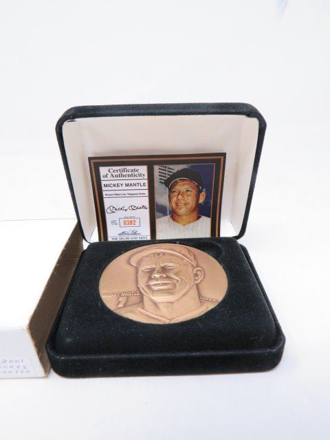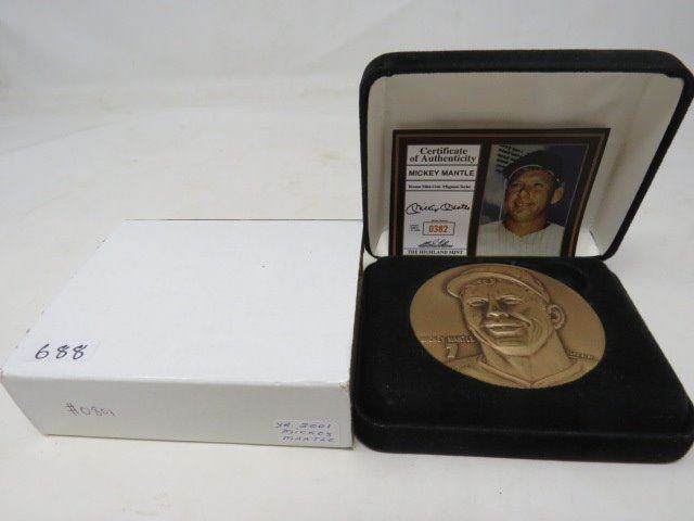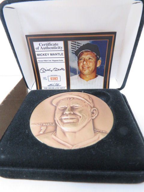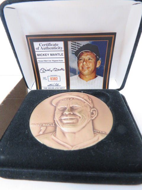 Mickey Mantle huge 2.5 inch brass medal with certificate of authenticity in case.