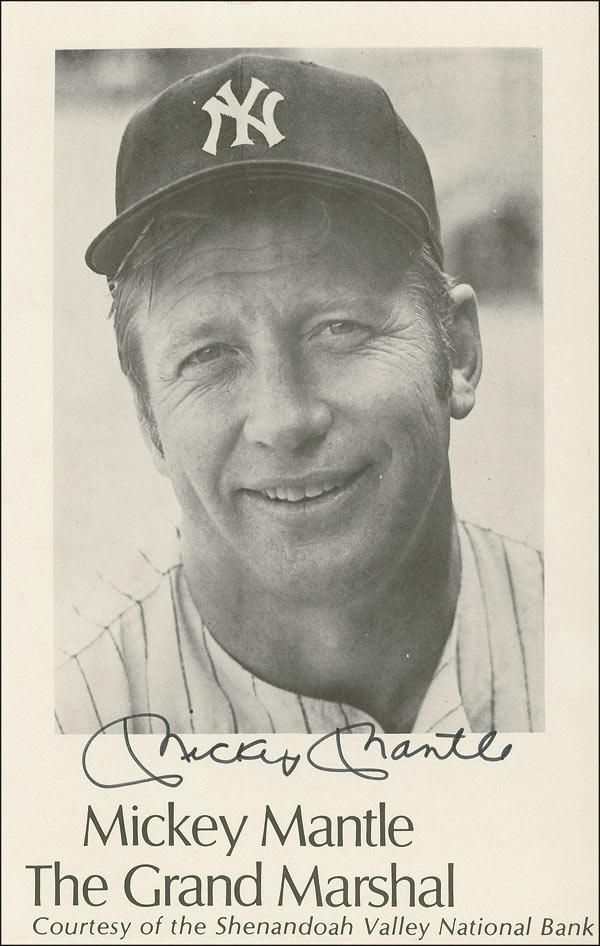 Promotional 5.5 x 8.5 paperstock photo touting Mantle as the Grand Marshal of the Shenandoah Apple Blossom Festival, signed in black felt tip. In fine condition.