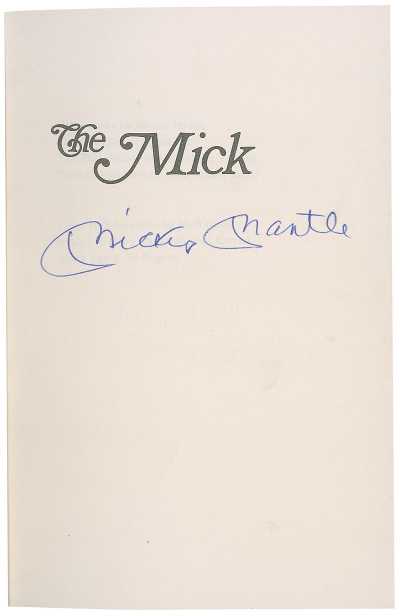 Signed book: The Mick. First edition. NY: Doubleday, 1985. Hardcover with dustjacket, 5.75 x 8.5, 248 pages. Signed on the half-title page in blue ballpoint. In fine condition, with some scattered light wear to dustjacket, as well as a couple trivial tears.