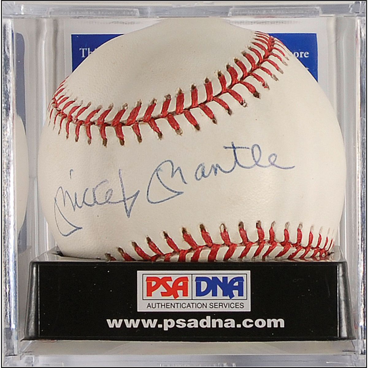 Official Rawlings American League baseball signed in blue ballpoint on the sweet spot. In fine condition, with some scattered light toning. Accompanied by a full letter of authenticity and grading from PSA/DNA, grading the ball “6,” the autograph “8,” and the overall grade a “7.”