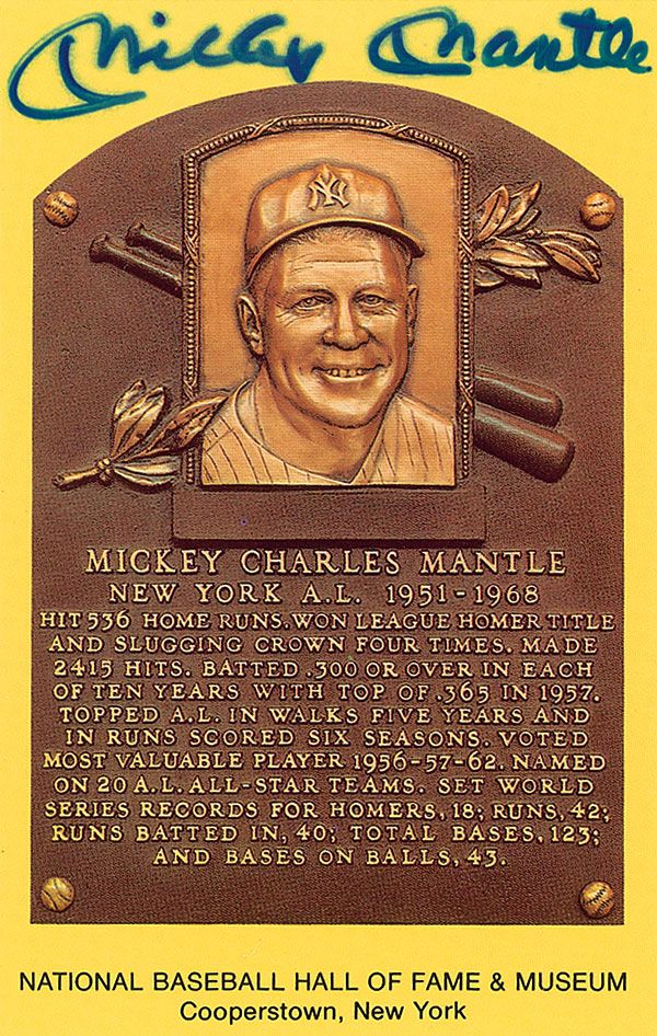Gold Hall of Fame plaque card signed across the top in blue felt tip. In fine condition, with overall haloing to signature.
