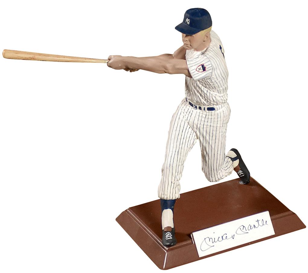 Desirable hand-signed limited edition cold-cast porcelain Salvino figurine of Mantle taking a swing in his number 6 uniform, numbered 318/368, signed on the front in black felt tip. Accompanied by the original box and Salvino certificate. In very fine condition.