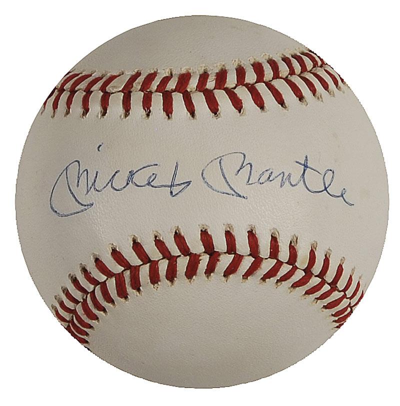 Official Rawlings American League baseball signed in blue ballpoint on the sweet spot. In fine condition, with a bit of trivial toning to a side panel. Pre-certified Steve Grad/PSA/DNA and RRAuction COA.