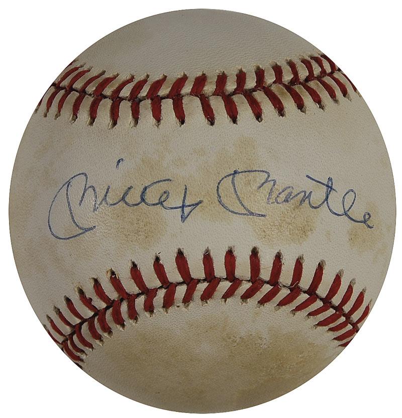 Official Rawlings American League baseball signed in blue ballpoint on the sweet spot. In very good condition, with scattered toning to side panels and sweet spot, affecting signature.