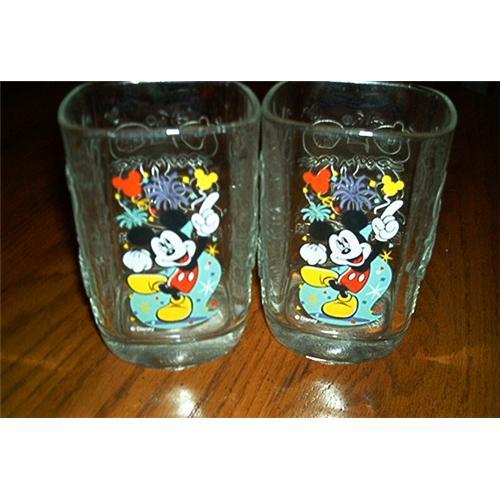 Featuring 7 Mickey Mouse collectible glasses from the year of 2000. Celebration of Disney World. Sold through McDonalds. All 7 glasses have McDonalds on the bottom base and through the bottom piece of glass displays "2000". Magic Kingdom. 2 glasses displays Disney's Animal Kingdom; 2 glass displays Magic Kingdom; 1 glass displays the EPCOT Emblem; 2 glasses displays Disney Studios and Holywood Vine. Each glass measures 4 5/8 inches tall; depth measures 4 1/4 inches; base diameter measures 2 3/4 inches by 2 3/4 inches. Mickey mouse is dressed in different outfits and decorations. All Mickey Mouse glasses are beautfully decorated and all are in excellent condition. No chips, cracks, etc.