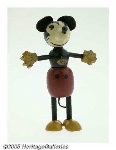 <B>Mickey Mouse 4" Fun-e-Flex Wooden Doll (Walt Disney Enterprises, 1930s).</B></I> Four inch tall wooden Mickey Mouse doll. In Excellent condition. <I>From the Larry Jacobs Collection.</B></I>