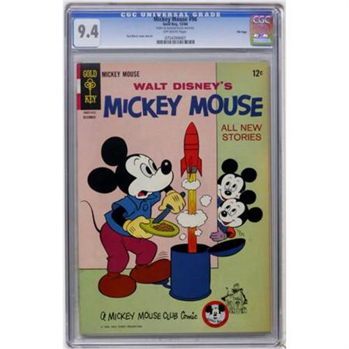 <B>Mickey Mouse #98 File Copy (Gold Key, 1964) CGC NM 9.4 Off-white pages.</B></I> CGC notes, "From the Random House Archives." Overstreet 2007 NM- 9.2 value = $38. CGC census 7/07: 3 in 9.4, none higher.<BR><BR><b>Shipping:</b> Comics - Slabbed (certified) (<a target="_blank" href="http://www.heritageauctions.com/common/shipping.php">view shipping information</a>)