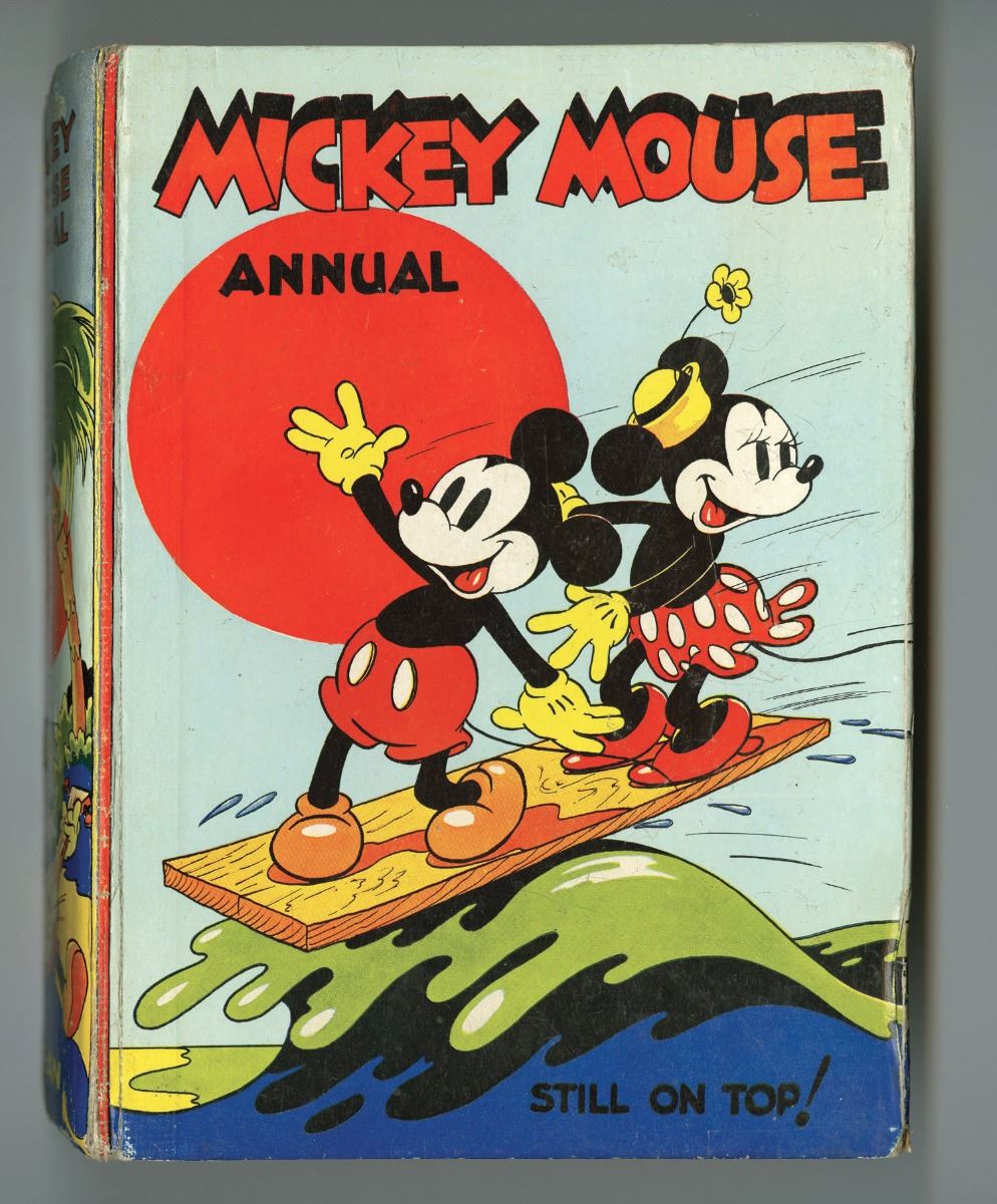 (Dean & Son, Ltd., 1938) Published in 1938 for the 1939 year. Contains comics, jokes, stories, and more of Mickey Mouse and Friends. Measures 8.5"x6.5". 120 pages. In good condition with some cover and spine wear. Dedicated to it's original owner in the interior.