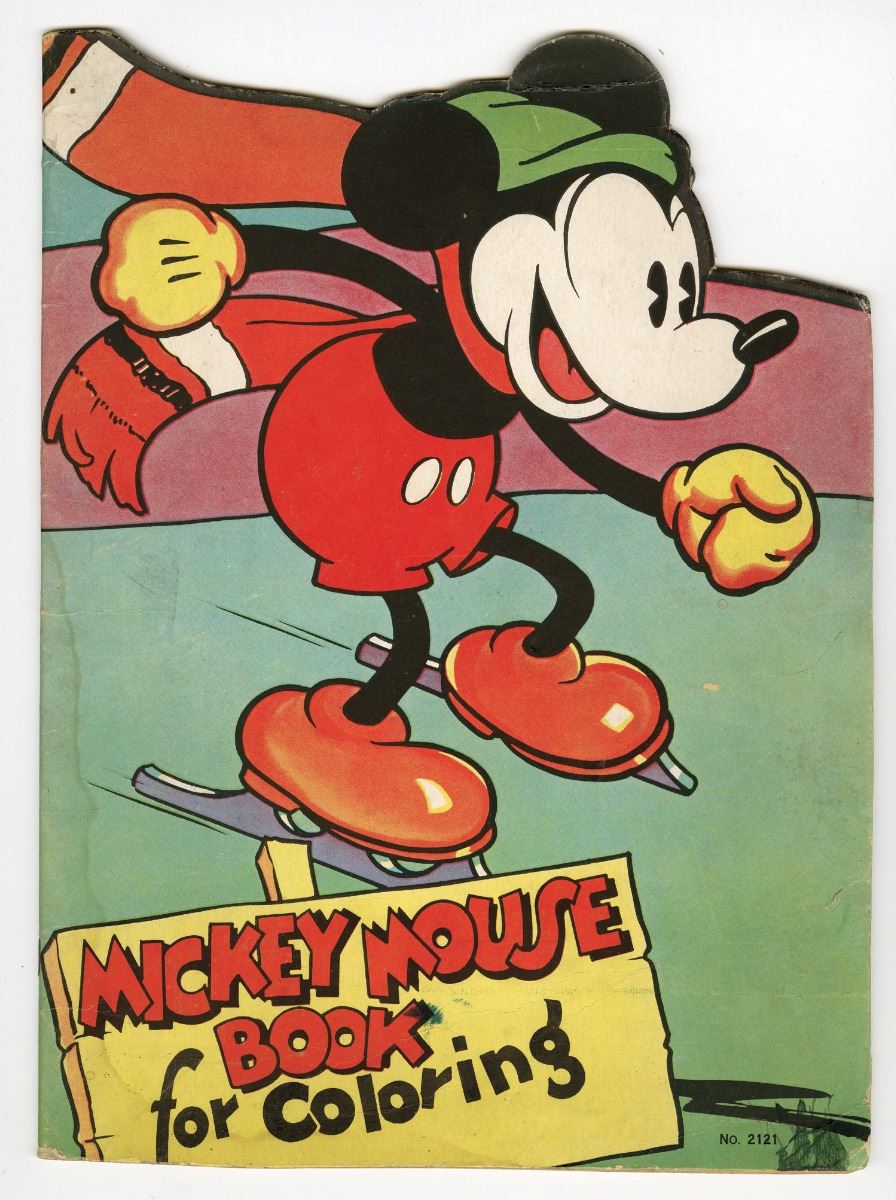 (Saalfield Publishing, 1936) Rare coloring book with a die-cut top edge. Measures 14.25"x10.5". 23 pages. In good condition with a few pages colored and some cover staining.