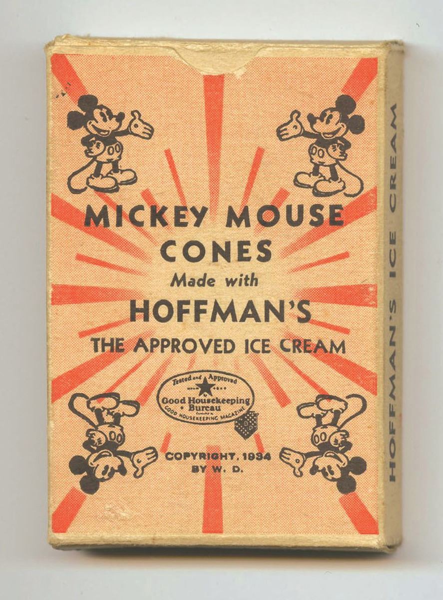(Whitman, 1934) Rare Mickey Mouse card game used as a promotional item by Hoffman's Ice Cream. Set of (24) Three Little Pigs themed cards come with the instructions insert and in their original box. Box measures 3.25"x2.2"x0.5". In very good used condition with some wear to the box.
