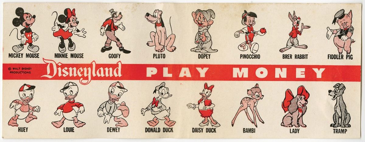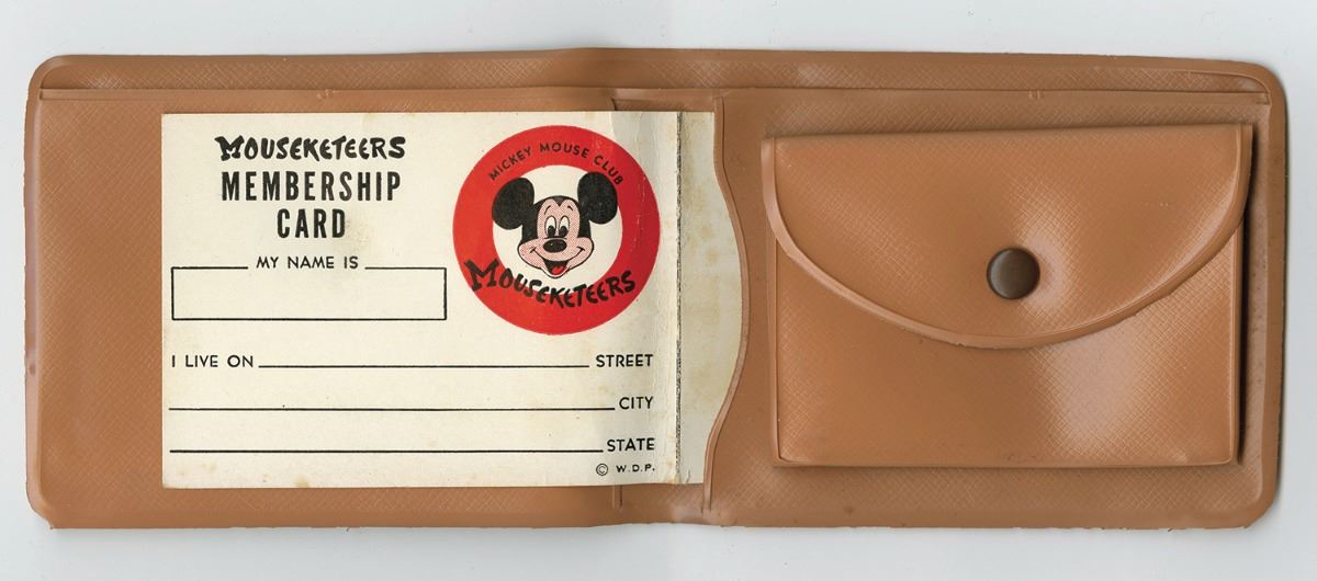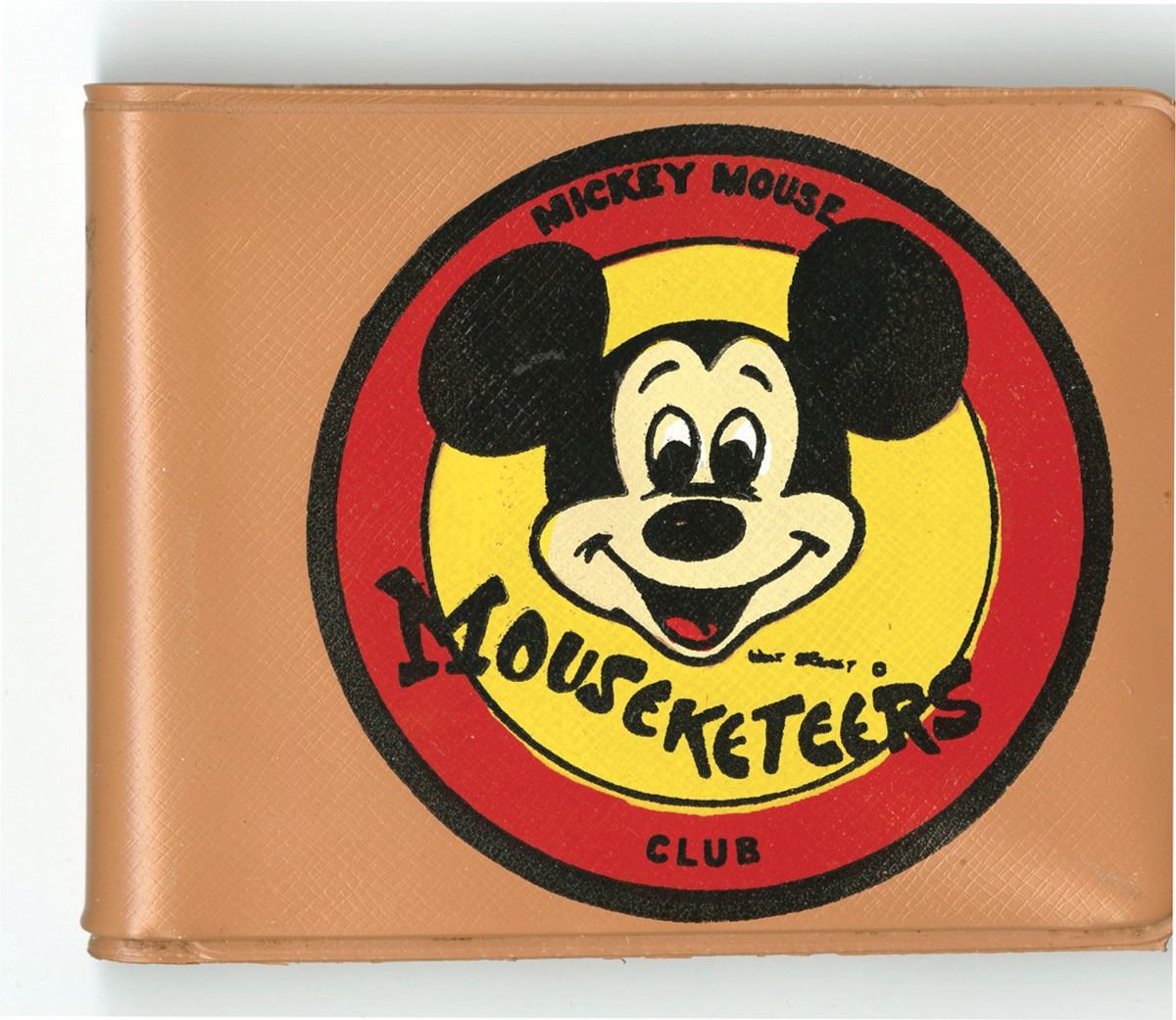 (Disneyland, 1955) Rare plastic Souvenir wallet originally sold at Disneyland featuring the "Mickey Mouse Club" logo on the front, and an unused Membership card inside. The 4"x3"(closed) wallet also contains "Disneyland Play Money". In fine unused condition with light wear.