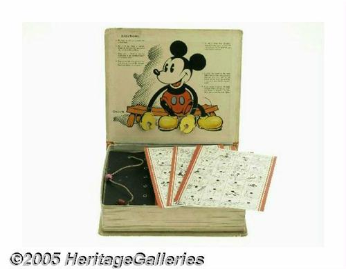 <B>Mickey Mouse Funny Facts Electric Quiz Game (Walt Disney Enterprises, 1935).</B></I> The most famous animated cartoon character of all gets his own electric quiz game, courtesy of Walt Disney Enterprises and the Einson-Freeman Publishing Company, producers of puzzles and games during the 1930s and 1940s. Includes the original game cards, terminals and light up bulb. Measures 8.5" x 9.5" x 2.25". In Very Good condition, there are less than ten known to exist. Spine may have been professionally repaired. <I>From the Larry Jacobs Collection.</B></I>