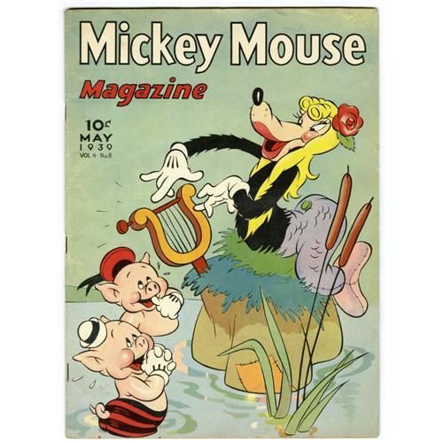<B>Mickey Mouse Magazine V4#8 (K. K. Publications, Inc., 1939) Condition: VG.</B></I> Big Bad Wolf cover. Subscription copy, with address printed on back cover. Bug chew on back cover in lower left corner; affects margins on several interior pages (no art or type areas affected). Overstreet 2006 VG 4.0 value = $100.