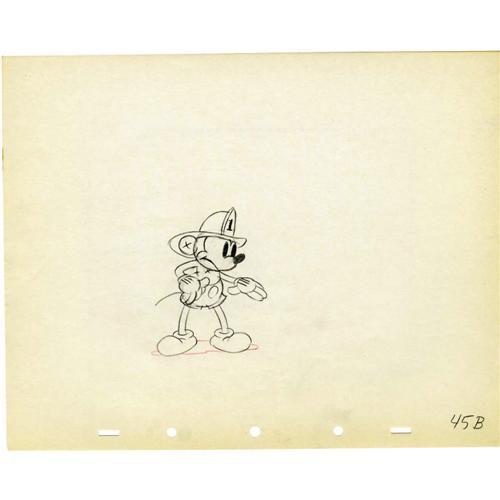 <B>Mickey Mouse "Mickey's Fire Brigade" Animation Production Drawing Original Art, Group of 3 (Disney, 1935).</B></I> Here are three original animation drawings from the Disney short, "Mickey's Fire Brigade," featuring firemen Mickey Mouse (OPD #45B), Goofy (OPD #10), and a long-billed Donald Duck (OPD #45D). Each is rendered in graphite on a 12 field sheet of animation paper (12" x 9.5"). Aside from some paper tanning, and light edge wear, the drawings are in Excellent condition. <BR><BR><b>Shipping:</b> Flat Material, Small (<a target="_blank" href="http://www.heritageauctions.com/common/shipping.php">view shipping information</a>)