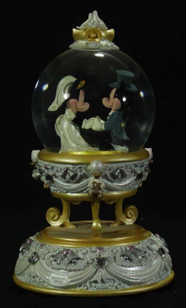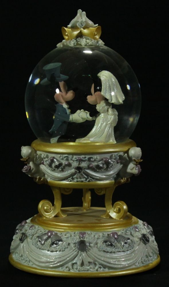 This beautiful piece measures roughly 9" high and 5" wide. The piece is both a snow globe and music box.