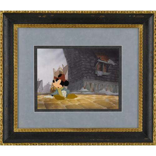 <B>Mickey Mouse "Prince and the Pauper" Production Cel with Presentation Background Original Art (Walt Disney, 1990).</B></I> Mickey plays the prince playing the pauper in this adaptation of the Mark Twain classic. Image area of 12.25" x 9". Framed and in Excellent condition.