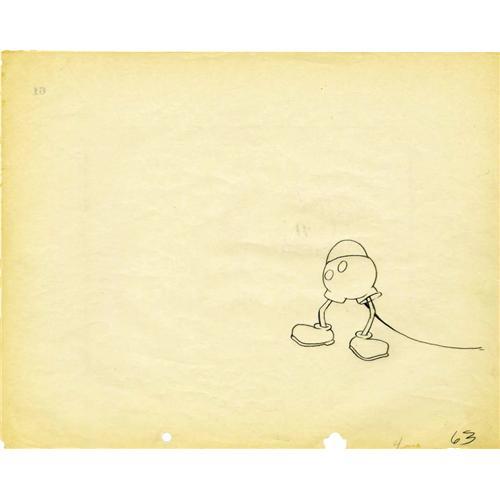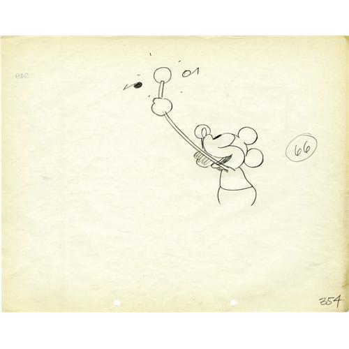 <B>Mickey Mouse "Steamboat Willie" Animation Production Drawings Original Art (Walt Disney, 1928).</B></I> Matching top and bottom halves of Mickey reaching out to play a tune, from one of the most important animated films ever. The top half is numbered 354 in the bottom corner, and stamped 349 on the back, while the bottom is marked 63 in the corner, and stamped 61 on the back. 2-hole animation sheets, each measuring 12" x 9.5". Very Good to Excellent condition.<BR><BR><b>Shipping:</b> Flat Material, Small (<a target="_blank" href="http://www.heritageauctions.com/common/shipping.php">view shipping information</a>)