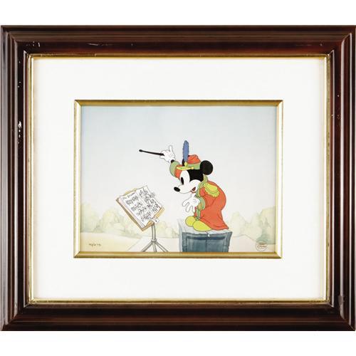 <B>Mickey Mouse "The Band Concert" Limited Edition Hand Painted Cel #90/275 Original Art (Disney, 1993).</B></I> This is a limited edition, hand painted recreation of a scene from the Disney short, "The Band Concert." This recreated cel set-up, "Maestro Mickey," is from Scene 33, Mickey prepares to conduct the "The Storm," just before a real storm picks up the band - still playing - and takes them for a ride. The background has been faithfully reproduced using the orignal background painting. The image area measures 11.5" x 8.5". Matted and framed, and in Excellent condition. Includes a certificate of authenticity. <BR><BR><B>Important notice:</B> Heritage usually auctions material at the rate of 200-250 lots per hour. On some occasions eBay Live bid software or the Internet may not be able to keep up with the pace of the auction. We recommend placing a realistic absentee bid now as insurance to avoid disappointment. Occasionally the auctioneer may eliminate or reject an eBay Live bid, and the auctioneer may also reopen a lot after the close of the eBay live bidding (usually because we missed an audience bid), and may reject your bid even if it shows you as the winning bidder. By bidding via eBay Live, you agree that Heritage may award the lot to another bidder at its sole discretion under the circumstances described above or any other reasonable circumstances. Since eBay bids are not shown to us until we open the lot on the floor, we treat those bids just like floor bids. In most cases the floor responds before the eBay bid is presented to us, due to Internet lag time, so for consistency we have made it a policy that floor bids are always considered first over tie eBay live bids. Also please note that all Heritage lots purchased through eBay Live carry a 22.5% Buyer's Premium. Please make sure you read the Terms and Conditions before you bid. This lot is being auctioned in conjunction with a live floor auction by Heritage Auction Galleries. All final auction and invoice information will be supplied by Heritage Auction Galleries, and all other information should be considered preliminary. Lot:41001 <BR><BR><B>Winning Notification and Billing:</B> After the FINAL session in this auction is complete, Heritage will send e-mail and snail mail invoices. This process normally takes several days. All final auction and invoice information will be supplied by Heritage Auction Galleries, and all other information should be considered preliminary. <BR><BR>This auction will be conducted on a live auction floor and over the Internet through eBay Live. If you choose to place an absentee bid, please take a moment to <font color='#0000ff'><u><a href='http://pages.ebay.com/liveauctions/help/before/laabsentee.html'>learn how eBay Live absentee bidding works</a></u></font><font color='#000000'>