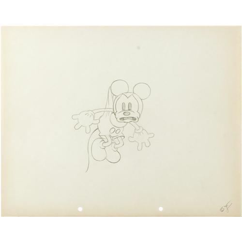 <B>Mickey Mouse "Trader Mickey" Animation Production Drawing Original Art (Walt Disney, 1932).</B></I> Original production art of Mickey hoisted up by his back on a spear. On 12 field, two-hole animation sheet, in graphite, measuring 12" x 9.5". Excellent condition.<BR><BR><b>Shipping:</b> Flat Material, Small (<a target="_blank" href="http://www.heritageauctions.com/common/shipping.php">view shipping information</a>)