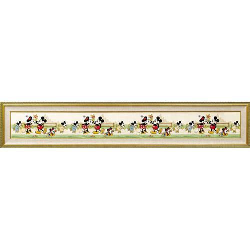 <B>Mickey Mouse Wallpaper Border Sample (Walt Disney Enterprises, circa 1935).</B></I> Think you have <I>every</B></I> Mickey Mouse collectible? We think this one may have slipped under most collector's radar! It's a large section of colorful Mickey Mouse wallpaper border, originally designed for children's rooms, now beautifully matted and framed to an overall size of 82" x 15", depicting Mickey presenting Minnie with a bunch of flowers, while mice children (Mortie and Ferdie perhaps, plus an unidentified baby Mouse) play nearby. This lovely and rare sample was showcased in <B>Walt Disney's Comics and Stories</B></I> #627, August 1998, on the back cover (a copy of which is included). Get yourself a large helping of Vintage Mouse with this sure-to-be-talked-about lot! <I>From the Estate of Bruce Hamilton.</B></I> <BR><BR><B>Important notice:</B> Heritage usually auctions material at the rate of 200-250 lots per hour. On some occasions eBay Live bid software or the Internet may not be able to keep up with the pace of the auction. We recommend placing a realistic absentee bid now as insurance to avoid disappointment. Occasionally the auctioneer may eliminate or reject an eBay Live bid, and the auctioneer may also reopen a lot after the close of the eBay live bidding (usually because we missed an audience bid), and may reject your bid even if it shows you as the winning bidder. By bidding via eBay Live, you agree that Heritage may award the lot to another bidder at its sole discretion under the circumstances described above or any other reasonable circumstances. Since eBay bids are not shown to us until we open the lot on the floor, we treat those bids just like floor bids. In most cases the floor responds before the eBay bid is presented to us, due to Internet lag time, so for consistency we have made it a policy that floor bids are always considered first over tie eBay live bids. Also please note that all Heritage lots purchased through eBay Live carry a 22.5% Buyer's Premium. Please make sure you read the Terms and Conditions before you bid. This lot is being auctioned in conjunction with a live floor auction by Heritage Auction Galleries. All final auction and invoice information will be supplied by Heritage Auction Galleries, and all other information should be considered preliminary. Lot:41001 <BR><BR><B>Winning Notification and Billing:</B> After the FINAL session in this auction is complete, Heritage will send e-mail and snail mail invoices. This process normally takes several days. All final auction and invoice information will be supplied by Heritage Auction Galleries, and all other information should be considered preliminary. <BR><BR>This auction will be conducted on a live auction floor and over the Internet through eBay Live. If you choose to place an absentee bid, please take a moment to <font color='#0000ff'><u><a href='http://pages.ebay.com/liveauctions/help/before/laabsentee.html'>learn how eBay Live absentee bidding works</a></u></font><font color='#000000'>