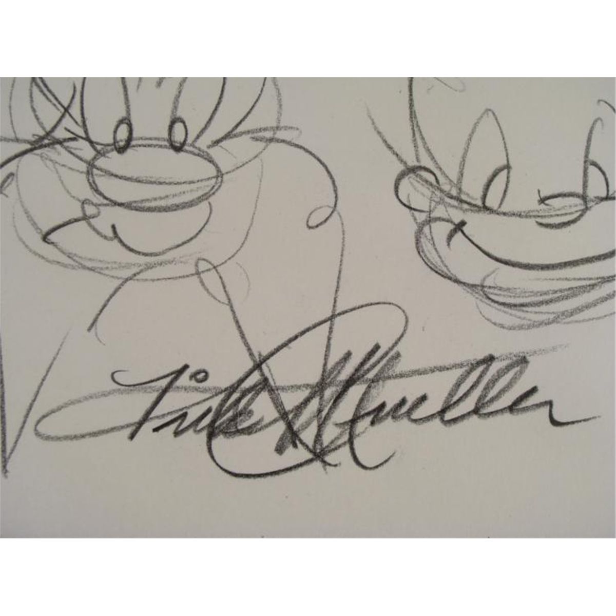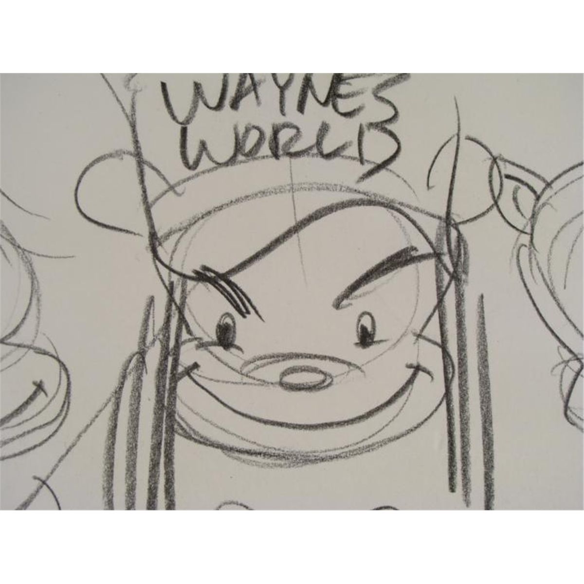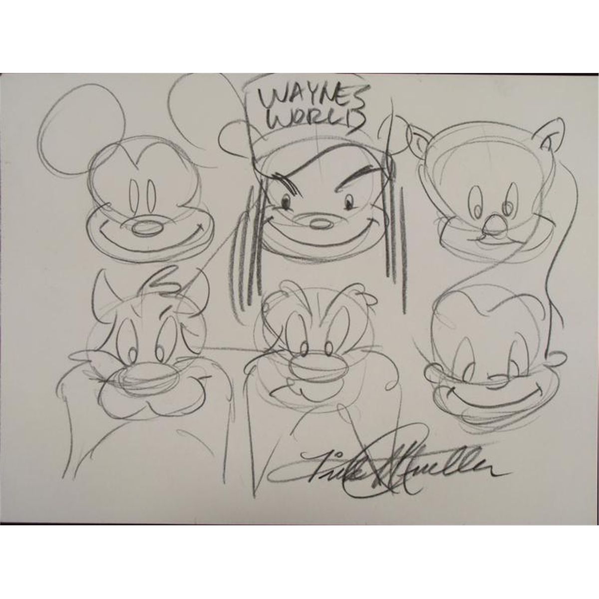 This is a character study, featuring some familiar heads from animation, including Mickey Mouse and Porky Pig, and someone wearing a Wayne's World cap. Whatever character he was going for, animator Kirk Mueller is world renown for his animation work. * Medium: Black pencil on heavy paperSheet size: 9 x 12 inchesCondition: Excellent condition