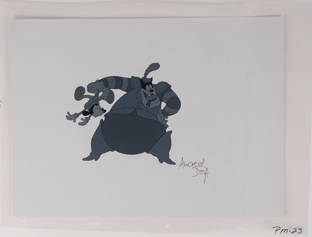 (Walt Disney Studios, 1990) Original production cel featuring Mickey Mouse and Black Pete from Prince and the Pauper, signed in the lower right by Disney animator and legend Andreas Deja. Image measures 6.25 x 5.75, with overall dimensions of 17 x 12.5. In fine condition.
