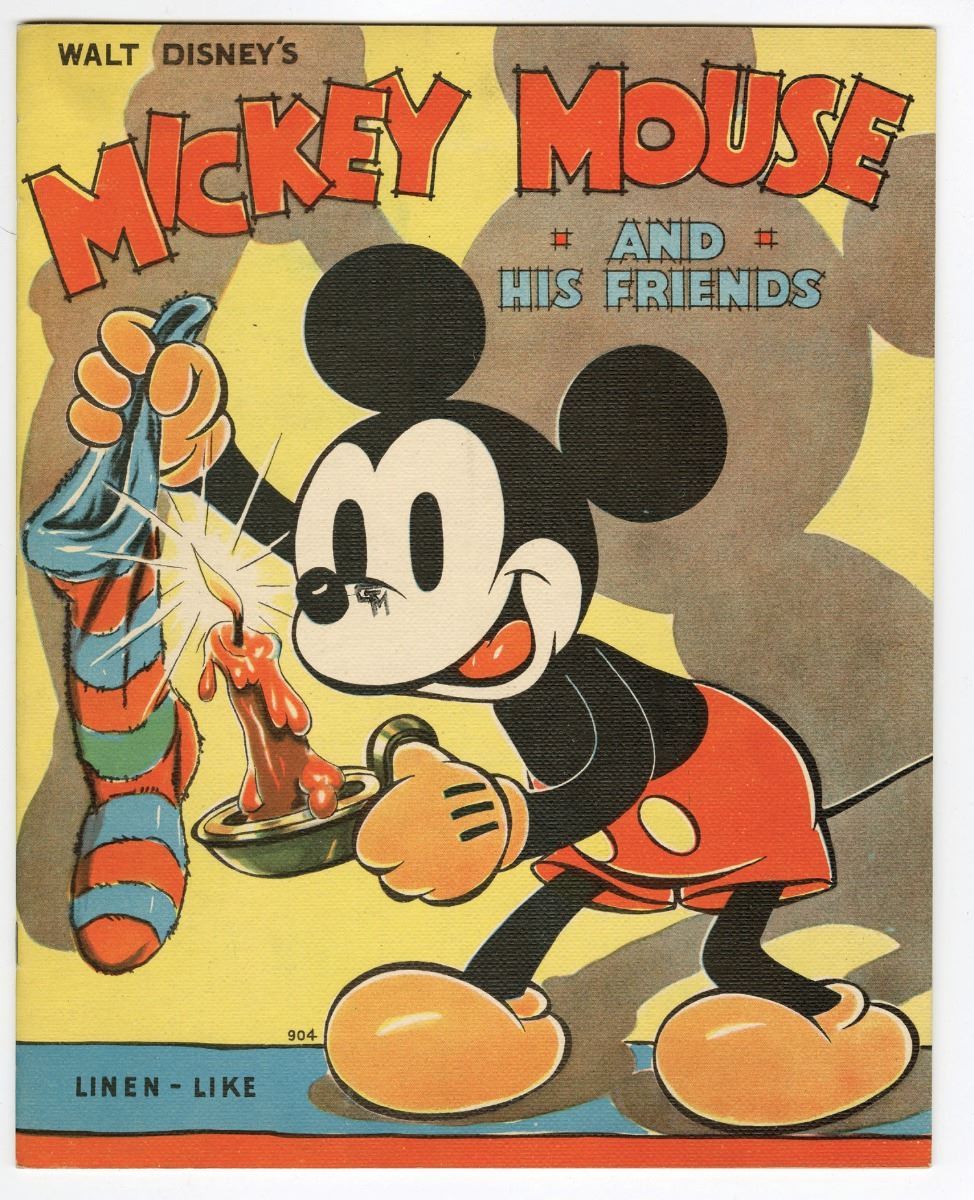 (Whitman, 1936) This "linen-like" softcover book measures 12.5"x10". 10 pages. In very good condition with a small initial stamp on the cover near Mickey's nose.
