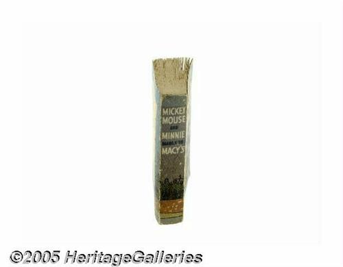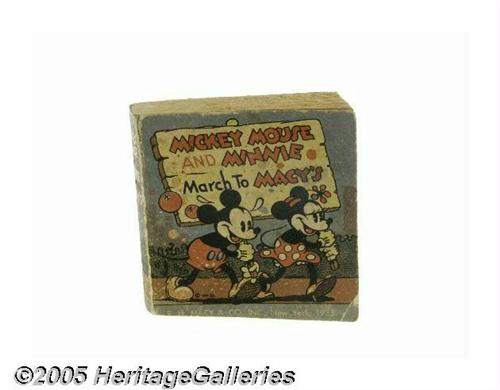 <B>Mickey Mouse and Minnie March to Macy's Giveaway (Whitman, 1935) Condition: VG.</B></I> The Christmas season in 1935 saw Macy's Santa handing out <B>Mickey Mouse and Minnie March to Macy's</B></I>. This Big Little Book measures 3.5" x 3.75" and is 144 pages long, telling the story of Mickey and Minnie attending the Macy parade. Some edge wear, especially along the spine, and a small crease at the lower right edge. Some pencil markings on the back cover, and on the first page. Most of the interior illustrations have been colored in crayon. Very rare. Ranks number 3 on Overstreet's Top 20 list for most valued Big Little Books. Overstreet 2005 GD value = $325; VG value = $900. <I>From the Larry Jacobs Collection.</B></I>
