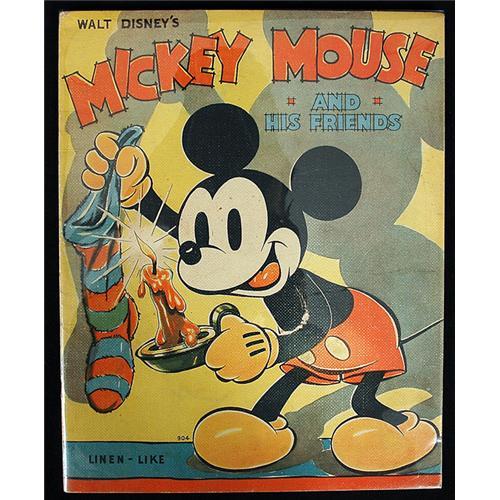 <Our item number 139905><B>Mickey Mouse and his Friends #904 (Whitman, 1936).</B> 12 pages, full color, "Linen-Like." Light age toning throughout, else fine. <BR>Estimated Value $300 - 500. <BR><BR>Our item number 139905<BR><IMAGES><P ALIGN="CENTER"><IMG SRC="http://www.goldbergcoins.net/liveauction/49jpegs/139905.jpg"> </P></IMAGES>