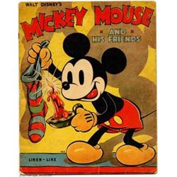 Mickey Mouse and his Friends (Whitman, 1936). Mickey Mouse is one of those national icons that never fades in our memory. This is the very rare linen book which came out in 1936, the same time as the Donald Duck linen book. Printed on a heavy linen-like stock, this book measures 9.5" x 13" and shows significant wear on the spine with slight rounding on the corners. Condition: GD+ Tan to cream pages. There is no Overstreet value listed at this time. Important notice: We expect to be auctioning lots at the rate of 200-250 per hour. Sometimes eBay Premier live bid software cannot keep up with that pace, so we strongly recommend that you place a realistic proxy bid now as insurance to avoid disappointment. Also please note that all Heritage/CAA lots purchased through eBay Premier carry a 20% Buyer's Premium.
