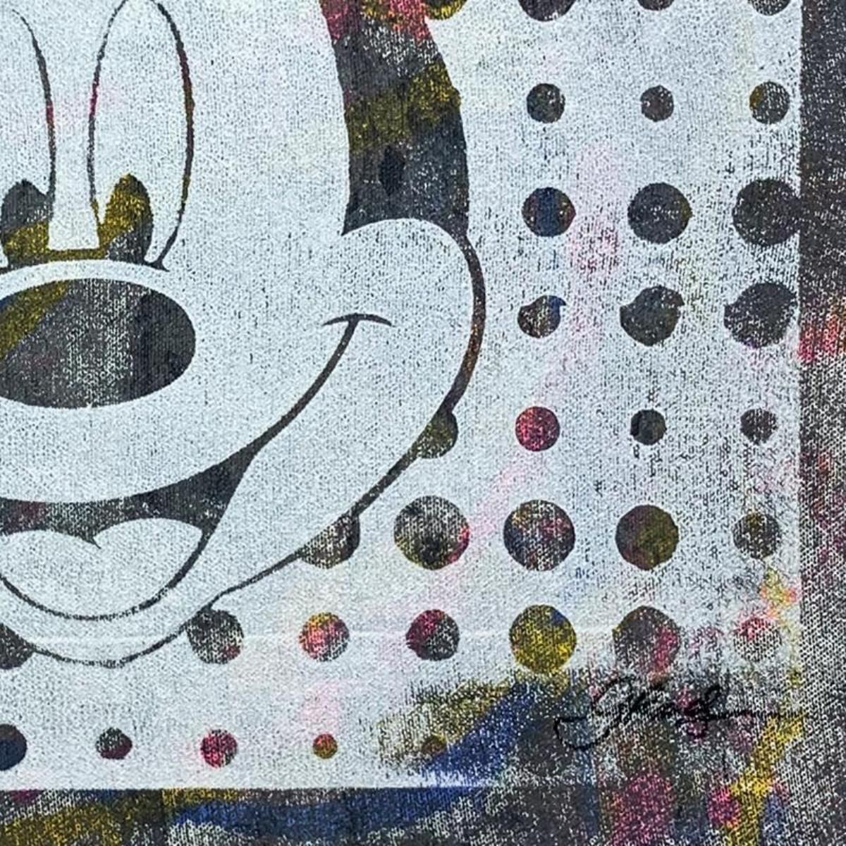 "Mickey Mouse" is an original hand pulled silkscreen and acrylic painting on canvas by Gail Rodgers. Hand signed by the artist, the piece comes with a letter of authenticity. This piece is meant to be gallery wrapped and measure approximately 23" x 23" and image dimensions (after stretching) 16" x 16" (image).